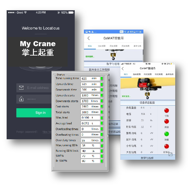 Real-Time Monitoring: Check the operational status of your crane at any time via the mobile app, including key parameters such as load conditions, working hours, and motor temperature, giving you complete control over your equipment.